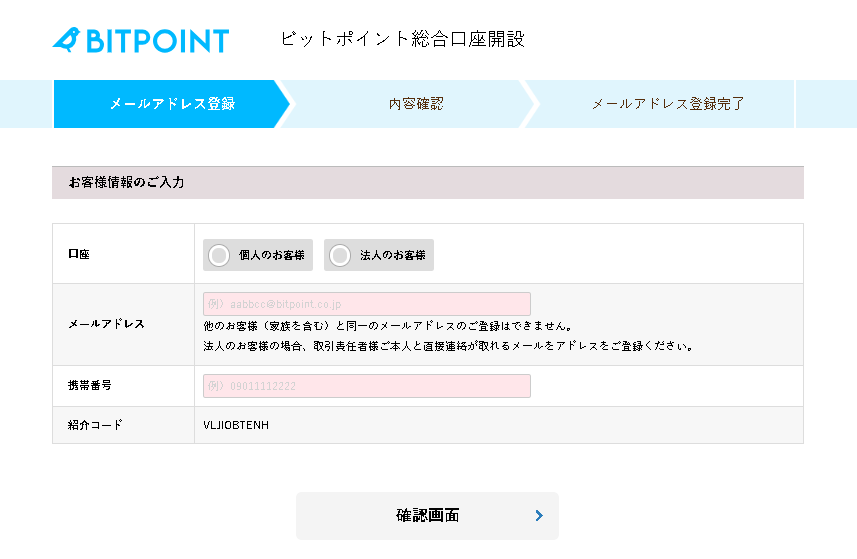 ビットポイントに登録してみる