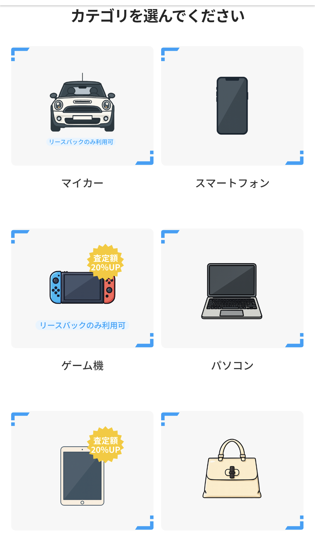 カテゴリが出てくるので査定してもらいたいアイテムを選択。